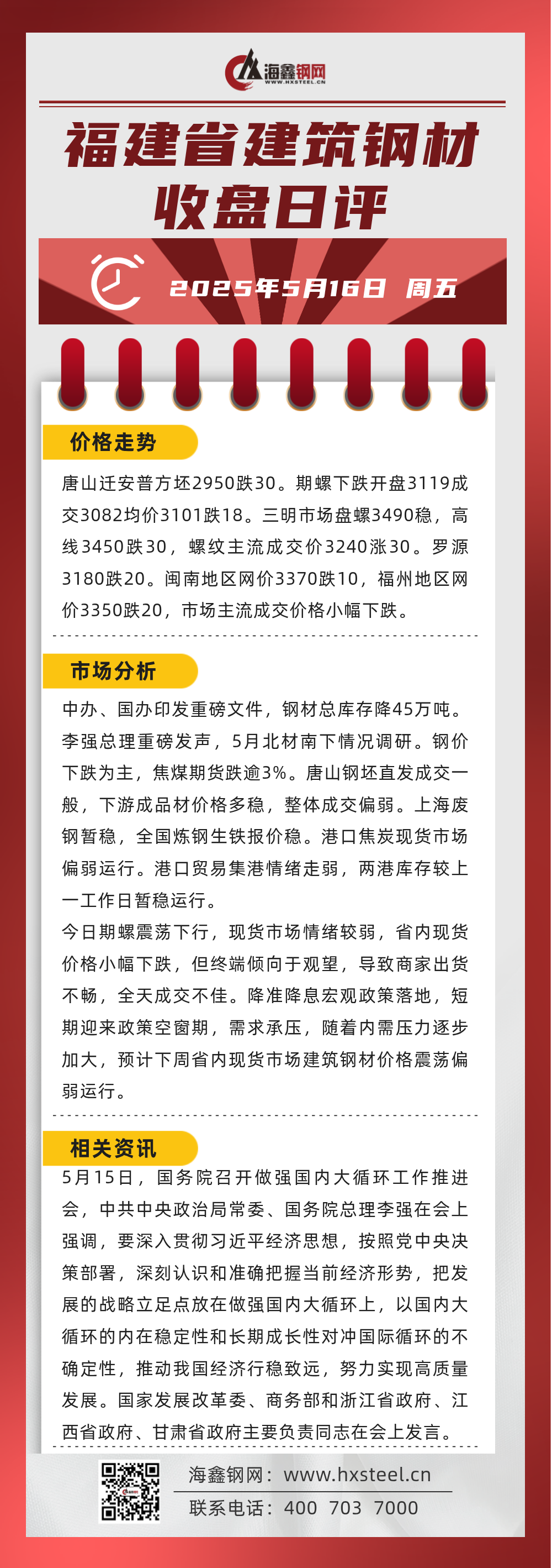 5月16日福建省內(nèi)建筑鋼材收盤日評